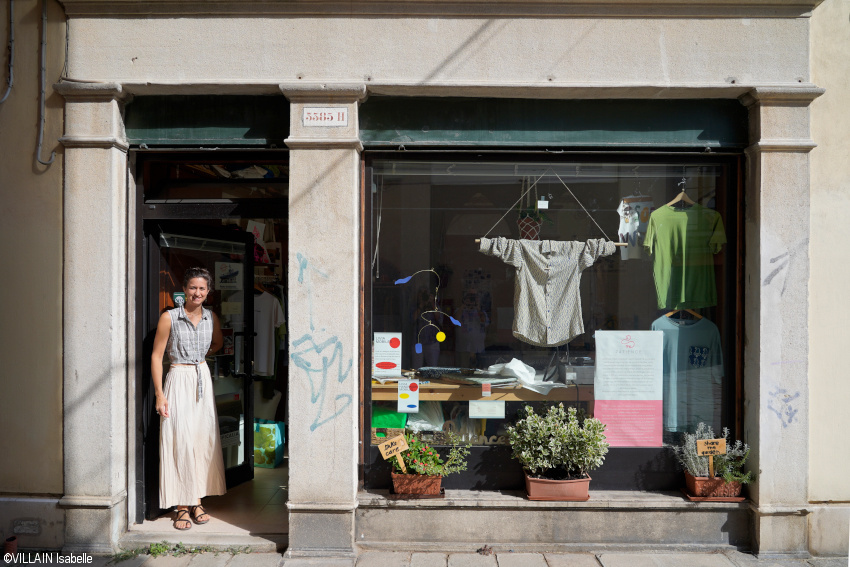 Patience de Daniela Lombardo se situe dans le quartier de Castello, à Venise. C’est sa boutique mais aussi son atelier dans lequel elle crée ses vêtements. Daniela Lombardo est respectueuse de l’environnement et des personnes. Si l’envie vous prend, poussez la porte de la boutique pour voir ses vêtements. Ils sont tous faits à la main et uniques.