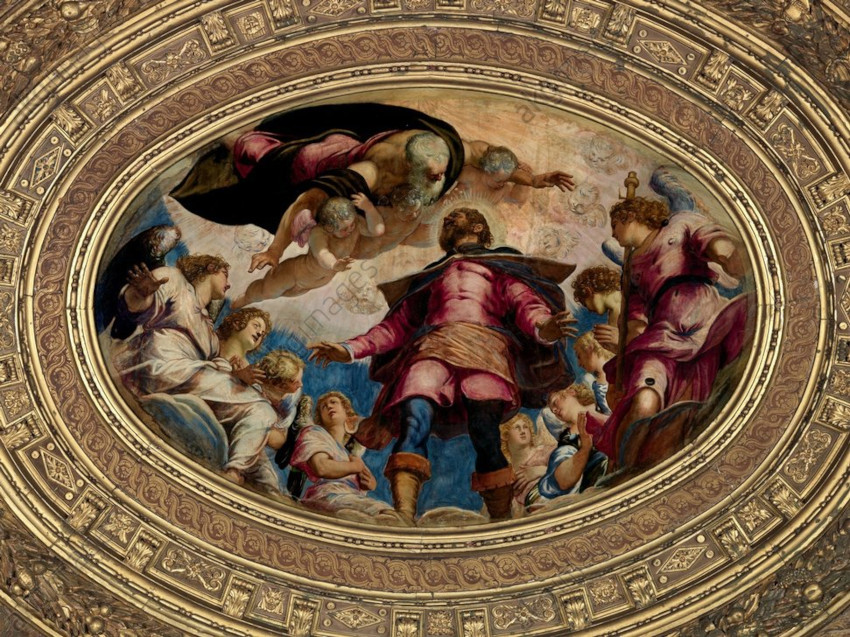 La salle supérieure ou Sala Capitolare, est décorée à partir de 1574 par le Tintoret