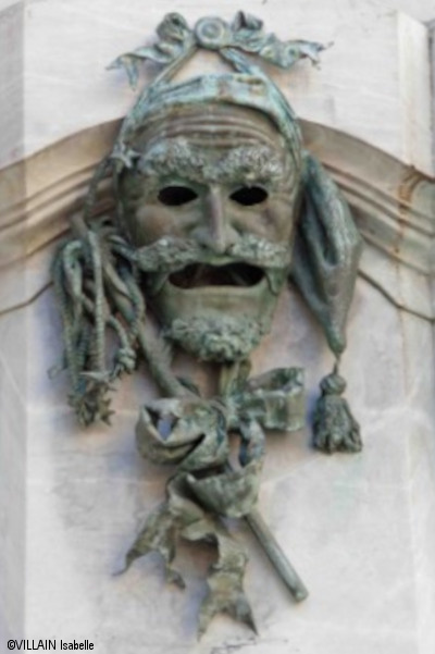 La statue de Carlo Goldoni à Venise repose sur un piédestal de style rococo de l’architecte Pellegrino Orefice. De plus des masques ornent les quatre faces sur socle.